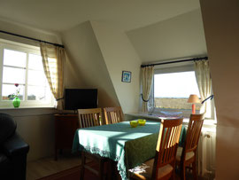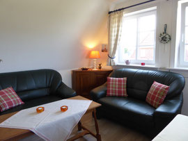 Im ersten Stock des Reetdachhauses, 50 m2 groß und Platz für bis zu 4 Personen in 2 Schlafzimmern. Eine vollmöblierte Terrasse mit eigenem Strandkorb wartet direkt vorder Eingangstür auf sie.